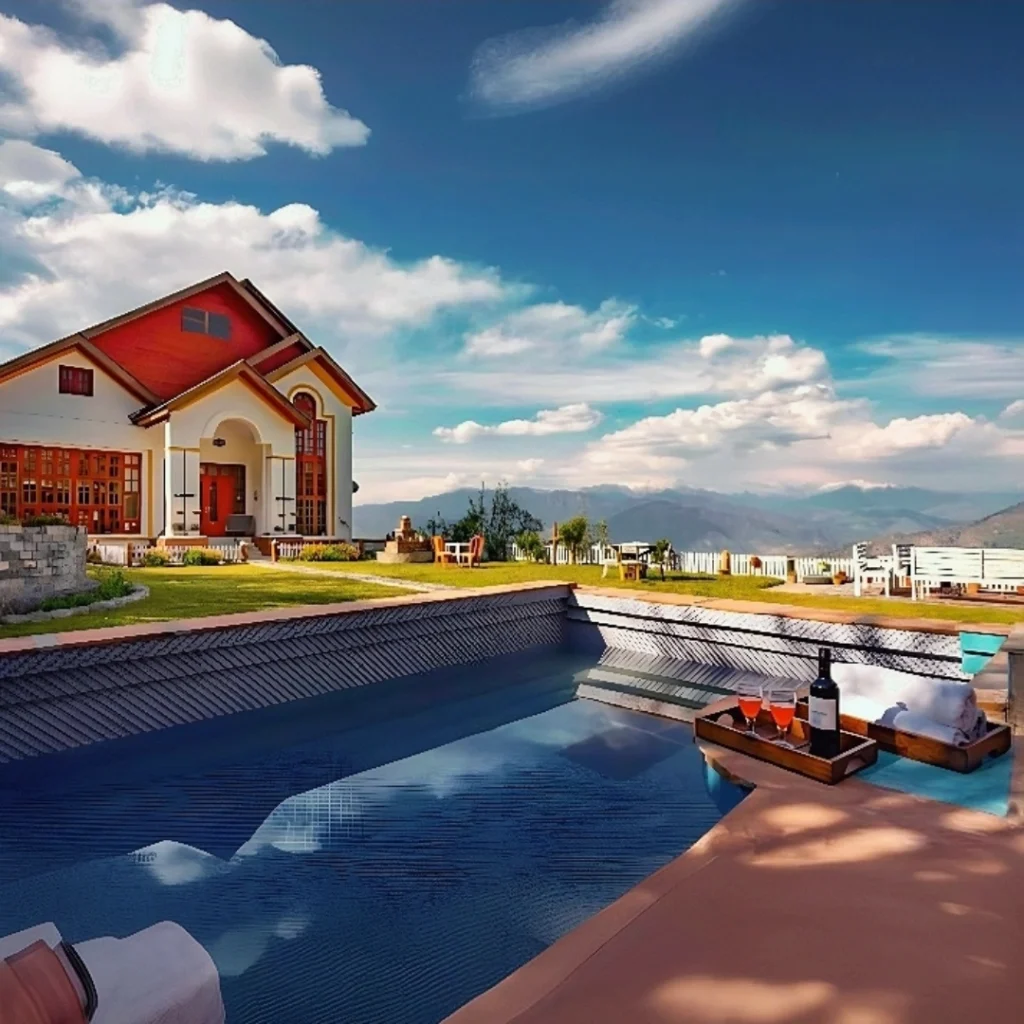 Designed with elegant wooden interiors and surrounded by nature, the villa offers the perfect escape from busy city life. Guests can enjoy stunning Himalayan views, fresh mountain air, and unforgettable sunrise and sunset moments.